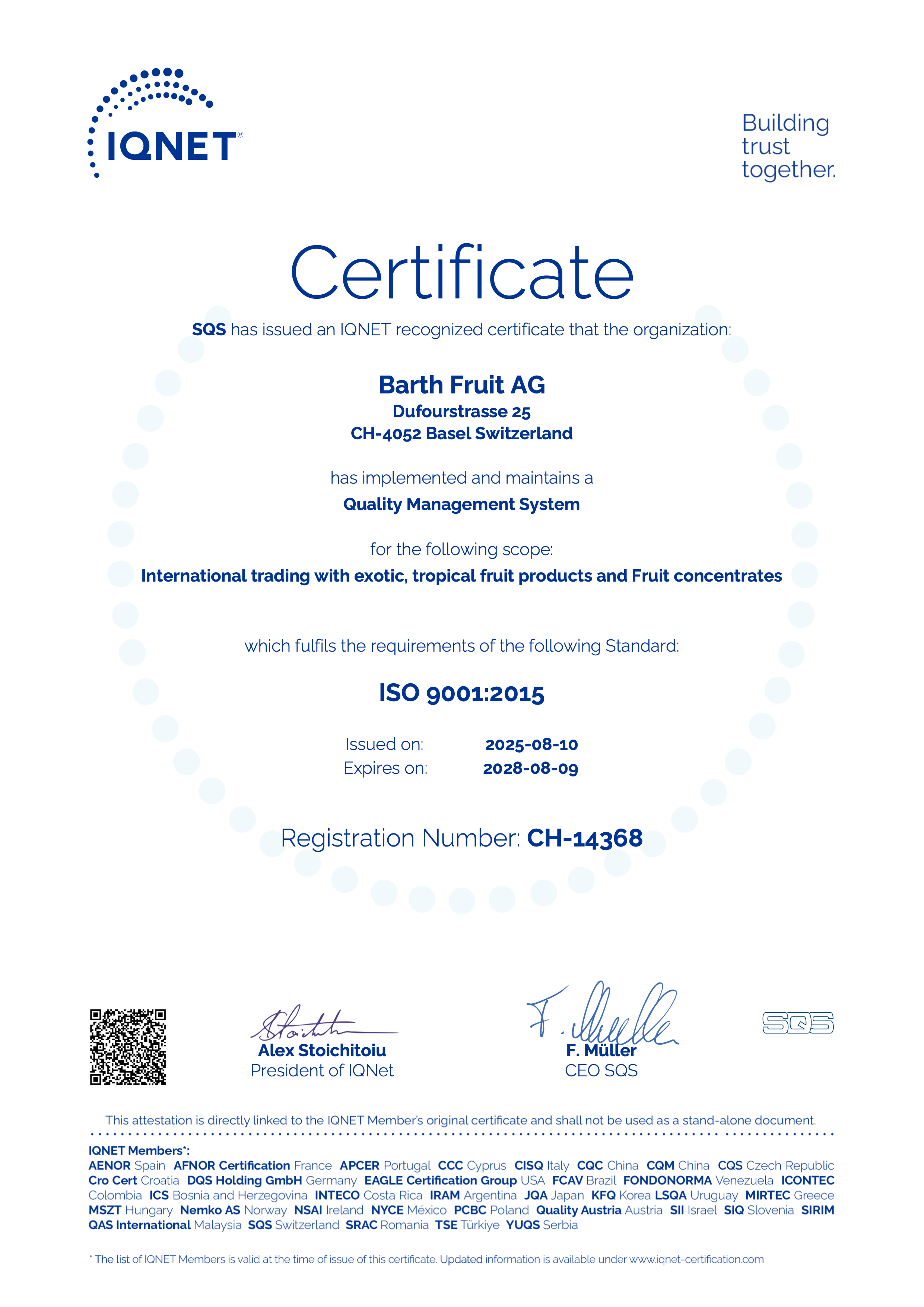 Chez Barth Fruit, nous nous contrôlons nous-mêmes et sommes contrôlés. Pour être précis : en permanence. Une assurance qualité sans faille n’est pas pour nous un vain mot couché sur du papier. C’est aussi l’expression de notre sens des responsabilités – pour une durabilité entrepreneuriale.